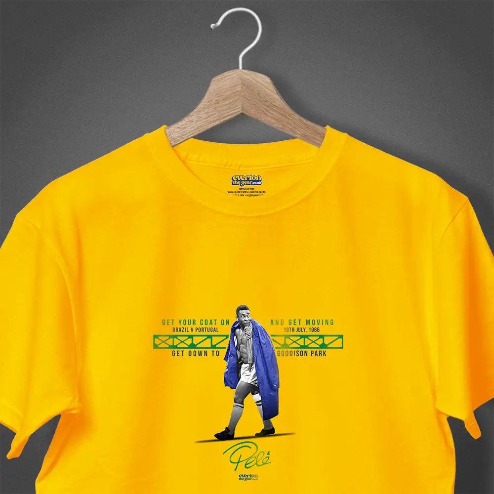 On the 19th July 1966 the legendary Pele literally got his coat on and got down to Goodison Park! After taking a bit of a kicking throughout the tournament he finally got beaten into submission and Pele was carried off by the team doctor and masseur.